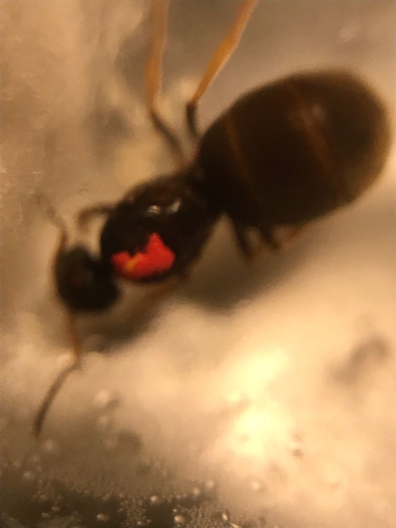 多雌管理しているケアリにマーキングした ケアリsp. cf.トビイロケアリ A ☆触角欠損 脚欠損 Q1+1 →Q☆ 有翅マーカー赤 Eに合流 B ×脚欠損 Q1+1 →☆ C ×腹部ダメージ有り Q1 →☆ ・ケアリ sp. 茶色 D ☆Q1+2 →有翅2☆ Qに赤(単独飼育 E ○Q1+6→Qマーキング白 有翅マーキング黄 +Aの生き残りの赤有翅 ・オオアリ sp. cf. ウメマツオオアリ 7~8mm Q1(寝室) Q2+3~4 試験管連結巣で多頭 ・オオアリsp. cf. ウメマツオオアリ 8mm程度 ※大きめのもの◎ A Q1 B Q1 ◎ C Q1 ◎ D Q1 ◎ E Q1 ◎ F Q1 G Q1+1 H Q1+3 腹部が丸っこいやつら←別種っぽい I Q1+6 J Q1+2 K Q2+4 Hはウメマツではなさそう。卵も違うし ぐぐったらトビイロシワアリの女王かもと思った。このまま飼ってみよう(・∀・)