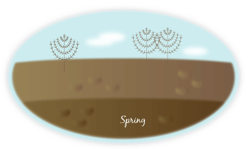 土手の枯れ草の下から生き生きし始めてるのを見て、旦那に訴えた(!?)