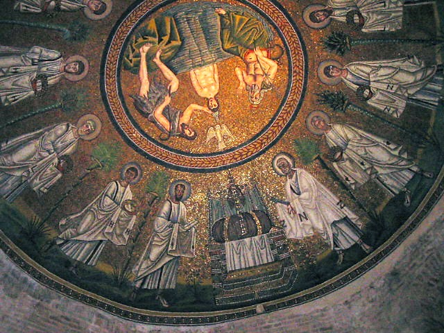 金沢市 金沢城内部 2.ビザンチン美術のモザイク(伊、ラベンナ) サンタポリナーレ、ヌエボ教会 教会では始めての壁モザイクに感激、バシリカ方式の教会。初期キリスト教時代になる。堂内は長方形で両側の壁にモザイクの聖人の列がある。モザイクの細かいピースは見えない。初めての聖堂で、こんなにも感動するとはやはり旅には来て見ないことには、解からない。 サンビッターレ教会(バシリカ)この建物は8角形の形の聖堂。ビザンチン様式。皇帝と妃のモザイクが凄い。鳥や花のモザイクが良い。教会内の祭壇の周りはモザイクで埋められている。他の部分はアーチが綺麗でビザンチン様式の教会建築。 アリアーニ洗礼堂市内の小さなバブテスマ(洗礼堂)、素朴な感じで天井の12使徒とキリストのモザイクは素晴らしい。 サンタポリナーレ、イン、クラッセ聖堂ラベンナ郊外にある、バスで向かう。聖堂の規模が大きい。有名な”キリストと12匹の羊(使徒を表す)”が正面にある。6C(世紀)中頃、天井が木製の木組みで古さを感じる。キリスト教初期の聖堂様式。正面のキリスト像の両側の聖人たちのモザイクは凄いただ感心する。 ネノニアーノ洗礼堂 八角形の5世紀の聖堂。円天井のモザイクにキリストの洗礼と12使徒がテーマ。大司教博物舘のなかでマクシミアヌスの司教座(椅子)の象牙の浮き彫りの椅子(6世紀のもの)が凄い彫刻だ。 ガッラ、プラチーヂィアの廟 5世紀半ば皇帝の妹のガッラにより建てられた静かな小さな、ビザンチン十字形の廟。このモザイクは色彩に富み、円天井の深い青が印象的。地味な色彩の中に色彩のシンフォニーと讃えられる。