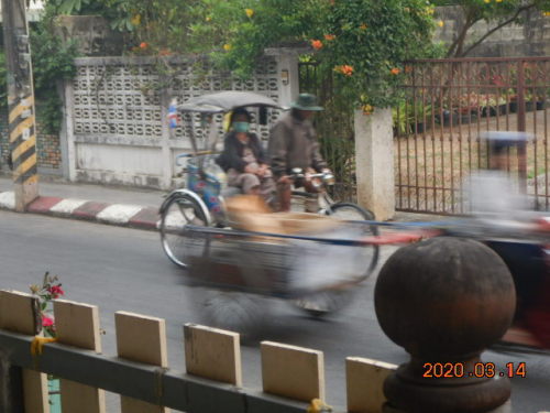 Thai Guest House スコタイ 時価 4泊目 2号室T 扇風機、ベープマット、机、20W蛍光灯、共同洋トイレ、水シャワー、洗面台なんだか起きれず。8時にやっと動き出した。宿のおばさんは食パンを用意していてくれたが、マーガリンしか付けるものなし、わざわざパン食もないだろう。丁重に断り朝食を食べに歩き出す。春雨の太麺汁108円を食べる。付け合わせはパサパサ鶏肉と豚血凝固だ。わりと美味しい。宿に帰り今日のニュースをチェックする。オリンピック延期、朝乃山大関昇進おめでとう。タイ国内のニュースではカンボジア国境が閉鎖された?少しづつヤバくなってきた。今日も動画を1本編集作業をする。昼食を食べに出かける。途中にあるメガネ屋に寄った。以前に作った事がある店だ。近視用の眼鏡を1つ予約する1,044円と安価だ。スチールフレームで弾力性があるものだ。以前作ったのはプラスチック製で見た目は良かったが、素材が弱い。折れてしまった。テープで補強して使っている。飯屋に行く、ピータン炒めを食べた店だ。今日はカナンムクローを注文した108円と安かったが、肉の量が少なかった。残念。宿に帰ると汗だく、シャワーを浴びた。14時に自転車で出かけた。100円ショップ(タイでは72円)で洗剤を購入した。その後、昨日行ったビックC近くにの病院前でドリアンが売っているのだ。チェンマイから来た時にバス車内から確認していた。しかし昨日、今日もドリアンは無かった残念だ。ガソリンスタンド併設7イレブンへ行くがフレッシュコーヒーの販売はしていない。なぜならアマゾンという喫茶店が隣にあるのだ。コーヒーを販売すると競合してしまうからだろう。街近くにある7イレブンでコーヒー90円とアンパン36円の組み合わせは、最強だ。とても満足する味、コーヒーの余韻がいい。ベンチ隣に座った。じいさんがタイガーバームを塗っていた。ハッカの臭いが、私は刺激性香料のアレルギーで咳こむ。コーヒーの香りが消されてしまった。メガネ屋に行き出来上がった品を受け取る。満足の出来栄え、しかし経費節減でメガネケースのサービスが無くなっていた。布に入れてくれた。これでは押しつぶされてしまう。もう一つ老眼鏡も注文した。明日の受け取り。+3.5度と進行している。値段は1,044円と同じだ。いつもは100円ショップの老眼鏡を使用している。宿の娘が務める自動車学校は明日から休校だ。タイも段々とキナっぽくなってきた。第二次世界大戦後最大の世界危機?とイタリアでは言っている。