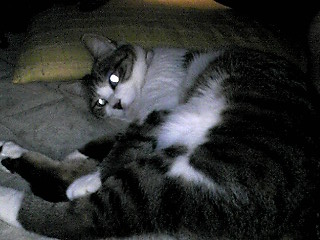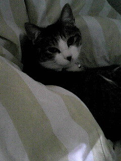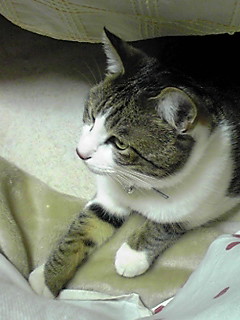 今日のもなか1月10日 不良ママめっあはは^^;流石に昨日は遅くなりすぎて今朝は全く起きられず・・・・お昼頃まで爆睡。もなかたんの御飯も上げずにいたらお布団の上をフミフミ、ホリホリ流石の「仏のもなかたん」(いつからだ?)も空腹にご立腹。 いくら遊んでもいいけどさ・・・・私の御飯だけはちゃんとやってよねっ!め、面目ない もなかたん。