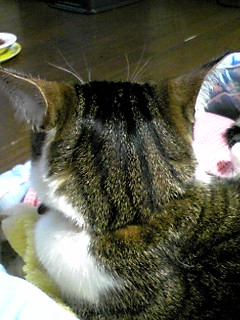 今日のもなか1月24日 もっと遊べいつものようにスポクラから戻ってくると足もとのずっとまとわりつくもなかたん。最後は我慢しきれなくてみあーたママの背中にジャンプして箱座り(?)して落ちつくもなかたん。ていうか、そこで落ち着かれるとママは何もできないんですけど・・・そうそう。今日は千葉にいる仲良しのおばさまから蟹を頂きましたっ!なので帰ってからだけど急いでカニ汁を作って堪能しましたカニ汁はホント旨くて、もなかたんの「遊んで視線」をものともせず黙々と食したみあーたママなのでした。カニは人を無口にしますねぇ~まだあと1杯分残っているのであすの朝も食べようっと^^