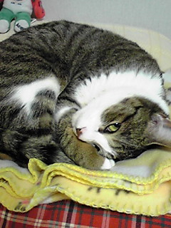 今日のもなか1月17日 にゃ?流石に木曜日に頑張りすぎ&寝不足で昨日ヨガから帰って速効入浴して手早く夕飯をすませて髪の毛を乾かさないうちにお炬燵で爆睡朝までぐっすりです。ヤバイっす。もなかたんも一緒になってお炬燵でグッスリ。今夜はちゃんとベッドに行ってちゃんと寝なくっちゃ。(ママ、反省中)その代り今朝はいつもより早く起きたので規則正しい休日になりました。比較的時間を有効利用したかも。この間から気になっていた車の異音も今度の車検の時に見てもらうための下準備みたいなこともできたし。明日は何しようかな?もなかたんとマッタリもいいけど掃除もしなくっちゃ・・・・