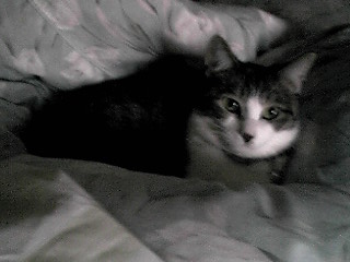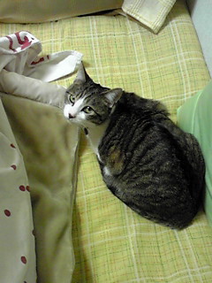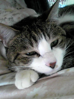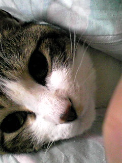 今日のもなか3月12日 今日は早いでしょうね?朝からもなかたんに疑り深い目で睨まれてしまいました^^;ところで、今日は悲しいお知らせですこの間会ってきた赤にゃんのうち白黒の(善)こうじが死んでしまいました。名前も貰って本猫も小さいなりに元気だったのに・・・・悪意のない誰か(同居の兄弟猫たち)に乗っかられたのでは(親元のマッサージのおねいさん談)これも運命だと判っていても切ない。弱い子は淘汰されるのは自然の摂理だけど・・・・