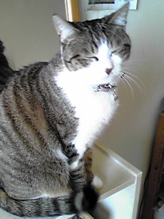 今日のもなか3月5日 今日は天気がいいみたいだね今日は久々のいい天気。今週は月曜日から愚図ついた天気が続いて気分もスッキリしませんでしたが今日はスッキリ。こんな日は家事に燃えて気合い入れて大物の洗濯とか掃除とかやっちゃうのになぁ。それにお布団も干したりしてしかぁーし本日はお仕事でした・・・・最近のもなかたん、ママちゃんがPCをいじり始めるとい1m位離れたところで「ニャーアッ!ニャーアッ!」と 少しイライラした感じで鳴いてきます。最初はなんで鳴くのか分からなかったのですが、どうやら「カリカリを食べるから見ててよっ!」だったようです。そんな事ってあるのかしら?今までそんな話は聞いたこと無いんですよ。皆さんちのにゃんこさんたちはどうですか??うちのもなかたんの様に餌を食べるところを見ているように鳴いてきますか?