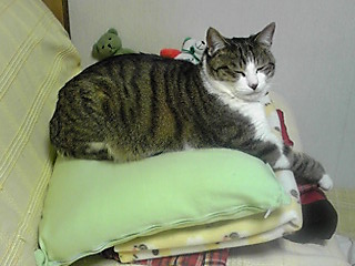 今日のもなか3月9日 又出かけるの?今日は風呂だけネ^^もなかたん、この座布団がお気に入りのようで、私がどくとホリホリしてみたり、写真みたいにうずくまってみたり・・・・私の匂いがしてるからかな?今日、ここのブログでお友達なった人から久々のメッセージ。なかなか忙しくて遊びに来れないみたいだけど、忘れずに訪ねてくれてとっても嬉しかったなぁ。近況報告もしてくれたし。これから無理せずぼちぼち行きたいね。