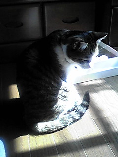 今日のもなか3月29日今朝のもなかたん、お外での鳥の鳴き声が気になったようです。アンテナピィーンの表情がかわいい^^(親ばか全開っす)最近やっぱりもなかたんは私がPCの前に座ると嫌みたいで「なあーなあー」いって妨害工作に忙しい。でも諦めると・・・・こんな感じで不貞寝していますさて、今日金曜日に壊れた炊飯器を買いに行ってきました。早速空き箱はもなかたんチェックです。説明書やら保証書やらを仕舞っていてふと空き箱を見るとチャッカリ空き箱にINしているもなかたん。箱の隅々まで匂ってチェックしています。 納得するまでチェックしそれから出てきます。今回の箱はもなかたん的に大きさが気に入らなかったようで早めに出てきました。それから今日は遊びたかったようでガッツリ遊んでみました。でもエキサイト過ぎてカリカリを入れておくお皿&お水用ボール、トレイを派手にひっくり返してしまいました。やっちゃったねー、もなかたん。続きはまた今度・・・・・ね