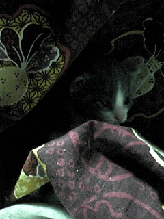 少し前にご報告したもなかたんの妹、弟達に会って来ました。実はこの子たちはもなかの母猫ニャーともなかの兄弟猫との間に生まれた雄にゃんこもーすけと母猫ニャーとの間に生まれた子供たち。つまり、ニャーかーさんは孫猫といたしちゃったわけで・・・・・飼い主さんはマッサージのおねいさんですが、お正月にアルバイトに行っている隙に交尾したらしく、避妊手術させる矢先の出来事でした。結局手術はできずに赤にゃん達が生まれました。白黒ブチの赤にゃん3匹全て男の子灰色白ブチの赤にゃん2匹全て女の子この5匹のうち、私が会いに行くまでに2匹すべて男の子の白黒のブチの子が死んでしまいました。残っている白黒の子も女の子たちの半分の大きさしかありません。それと言うのも下あごが未発達というか無い。いわゆる「奇形」でした。そのためお乳を飲むものの、吸う力が弱い。そのために大きくなれないようです。でも、今日残った3匹の名前を考えてつけました。 この子はひなちゃん この子はすばるすばるはmizuさんちの子に決定しました。もう一匹男の子はコウジ。本名は(善)コウジです(爆)この子はちゃんと名前を貰ったので先に逝ってしまった赤ちゃんの分まで生きてくれると信じています。