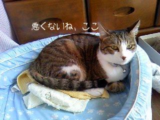 今日のもなか9月12日今朝はいつもお世話になっている化粧品屋さんでお肌チェック&お手入れで朝一番で予約しました。いつもの土曜日よりかなり早起きと言うか活動開始だったので時間がかなりタイトになってしまいました。予約時間が迫る中支度を始めているとタンスから出した秋物のアウターの上にもなかたんが落ち着いてしまいましたもなかた~ん、ママちゃんお出かけの時間なのよぉと、彼女を強制撤去して遅刻気味でお店へ。お肌チェックの結果は前回6月よりかなり状態が良くなっていました。(まぁ前回はお手入れが甘かったというかお肌に悪い事ばかりやっていた時だったので仕方ないですが・・・)終わって来た商品を買って家に戻ってきました。いつも出ているエアロビクスのクラスには間に合う時間でしたが今日はおさぼり決定もなかたんとのんびりする事にしました。(と言うか、お昼寝三昧ですが・・・)今日はのんびりするよ、もなかたん。雨降りだし、たまにはこう言う事でもしないともなかたんとのんびりも出来ないし、体もきついですからね。さて、明日は頑張るかなっ!