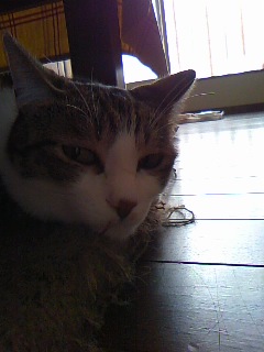 今日のもなか9月6日 早く寝たらぁ?今日は昨日代行で受けられなかったイントラさんのクラスを中心に3本エアロビクス&ダンスのクラスを受けました。朝から御飯やパンなどの穀物をほとんど採らなかったので夕方頃にはフラフラ・・・特に前半のエアロビクスはイントラさんも気合入りまくりで飛ばす飛ばす途中移動時間等時間が少しあったのでスーパーで買い物をして補給。でも最後のレッスンはぐだぐだでも帰ってからいろいろとやることがあってその1つにもなかたんのトイレを綺麗にする大仕事があります。1か月交換いらずのシステムトイレを使っているんですが今日は交換の日に当たり、夜中に砂とトイレシートの交換をしていた時に画像のような顔で見られていました。でもこれをやらないとねぇ~綺麗なトイレでもなかたんのきっと満足なはずっ!さて、寝なくっちゃ。おやすみなさぁ~~~い