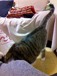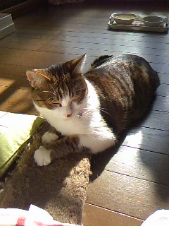 今日のもなか11月7日 ぽかぽかぁ今週3日までは真冬かもと思うほどの寒さでしたがだいぶ今日なんかも温かいみあーた地方。お日様大好きなもなかたん、早速日向ぼっこです。午後はいつも通りスポクラだったのですが、もなかたんのお見送りをしてくれません。どこにいるかと思ったら・・・3Fロフトに置いてある来客用のお蒲団があるんですが、いい塩梅にお日様が当たってそこでもなかたんは日光浴中でした・・・・冷たいぢゃないですか。。。もなかたん