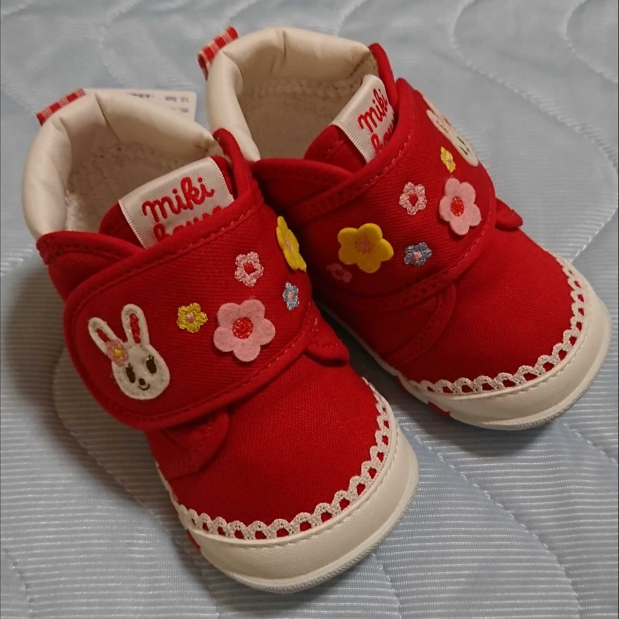 10%OFF //ミキハウス mikihouse フラワーうさこ♪デニムファーストベビーシューズ(11.5cm-13.5cm)