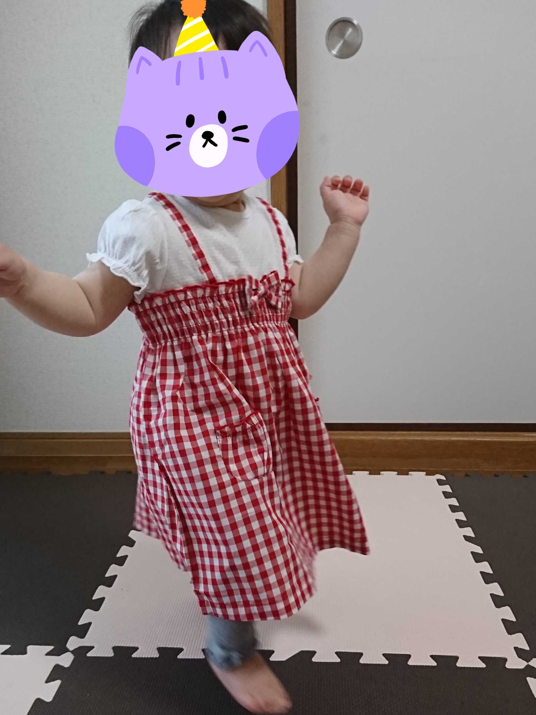 この日は結局80センチのジャンパースカートを着ました!