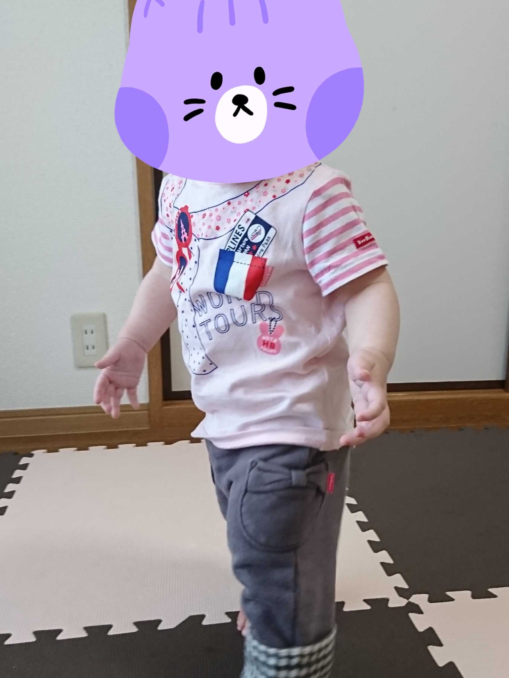 Tシャツは、1歳になったばかりでも意外と90センチで大丈夫ですよ。