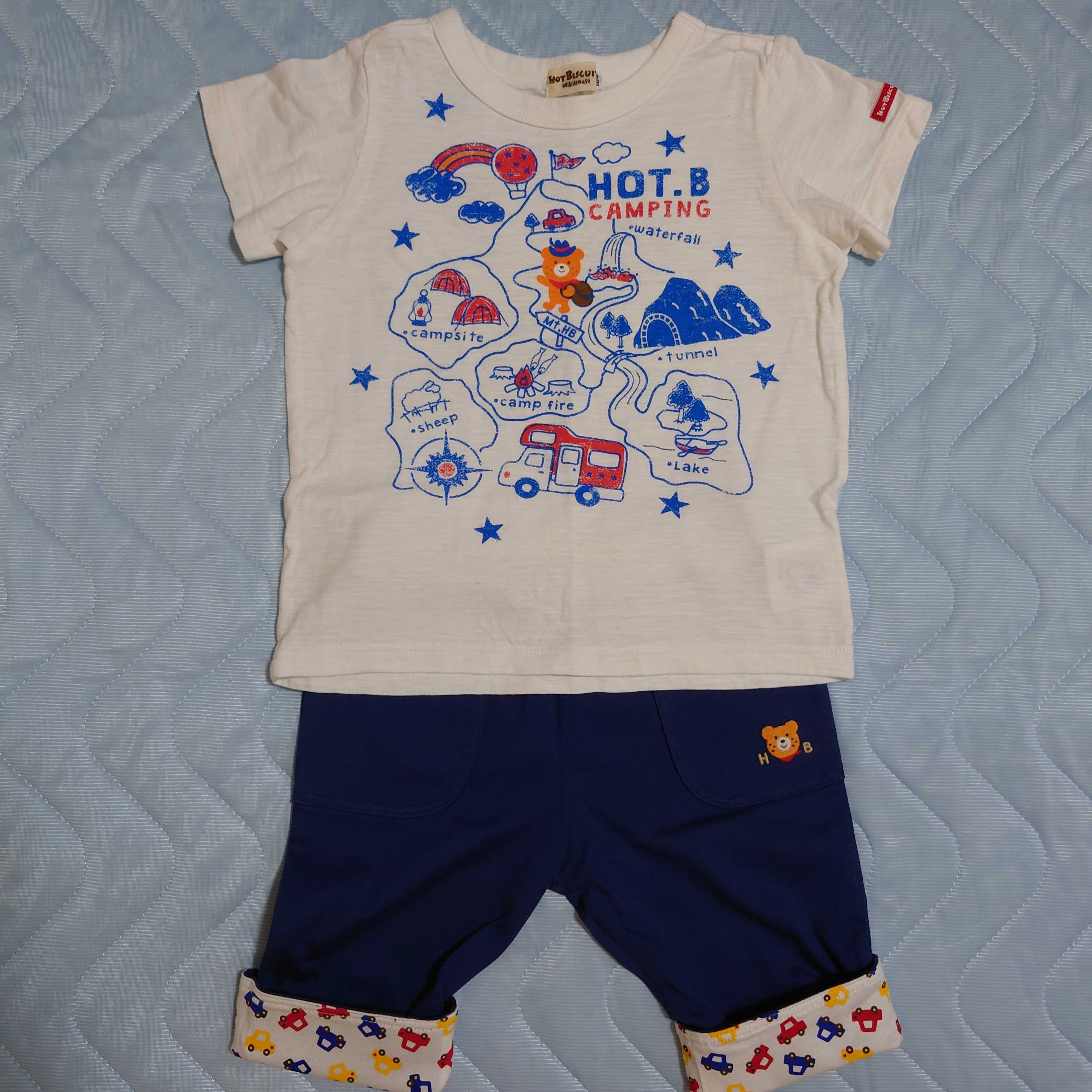 [100/110cm] やわらかハーフパンツ(天竺 / 男の子 / 裾折り返し柄)/ミキハウス ホットビスケッツ