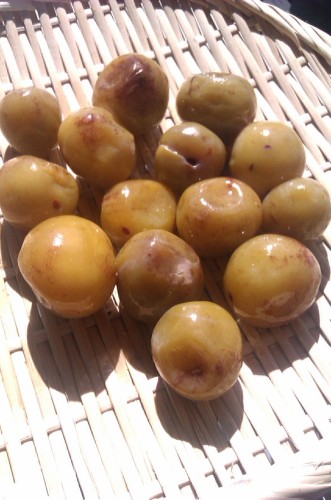 9月に入ってバンクーバーはまだ夏が続いて、本当に今年は最高のお天気となりました。毎週末に行くマーケットの野菜や果物も本当に美味しくて、色とりどりで本当に綺麗。その中のオーガニックのお店で、梅が売っており、私は毎年、それで梅酒を作るのですが、今年は梅が豊作だったのか、いつ行っても有り余っており。。で、今年は梅干も作ってみよう。。。と挑戦してみました。作り出したのは1ヶ月以上の前の話。。。どうやら、そんなに梅干も簡単にできるわけでもなく、失敗すると勿体ないので、初めてということで20粒だけで、作ってみました。。。が、やっぱりそのうちの6粒はカビが生えてきて、おおおー、やばい!って思ったのですが、後は、何とかセーフで、生き延びましたよ。生き延びた梅を天干しにして、3日間くらい。。。お天気の続いてる日にしかできないので、バンクーバーで9月にってのは本当に珍しいっすね。ま、大体、こちらで梅が出てくるのが8月だから、日本とかなりずれてます。。。そして、出来上がったのがこれ!!!!食べてみると。。。無茶上手いではありませんか~~~~かかったコスト。。。オーガニックの梅3ドル。。。ナチュラル塩 1ドルもかかってない。。以上。。。安上がりー、しかも、オーガニックですよ!まだ梅は出てるんですけど、きっと10月に入ったら雨季に入るので、今年はこれだけにしておき、来年、たくさん作りたいと思います。初めての梅干、なかなか上出来でした。しかし、梅干作るときに出てくる、梅酢。。。知らずに捨ててしまいました。こうやって使えるんですね。。涙 国内産の有機梅と有機しそで作った梅酢です。【5.250円以上送料無料】ムソー 有機梅酢(白) 200ml《海外発送Welcome宣言》【取寄商品】LAA【smtb-k】【YDKG-k】【kb】【1koff】和歌山産有機南高梅の梅干100%【オーサワジャパン】 有機ねり梅 150g
