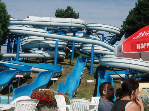 今年の夏のバンクーバー、何度も言いますが、本当に最高でした。なので、そんな最高な夏を逃すわけにはいけない。。。と思い、仕事の合間を見つけては遊んで?ばかりいました。で、ずっと6月から行くと決めていたWaterPark....しかし、桃太郎の仕事の関係で、彼は週末残業出勤が多かったため、平日にしか行けない!とか言うし、私は平日仕事だしーと言ってると、気が付いたらまた8月だったので、桃太郎に平日の休みを取ってくれ!!と要求したら運よく、仕事自体がお休みで、平日の休みが取れたのです。やっほー!!!ラッキー!!!!と思い、また平日の早朝から家をでて。。。朝いちばんに行くと。。。。げっげー、もうすでに行列が。。。オープン前でも。。。で、びっくりしたのが、なんとアジア人、私一人だけで、後はみんな白人カナダ人ファミリーばっかりでした。なんか、髪の毛黒い、肌の黒い私が、ひとりやたらに目立ってましたよ。(;^ω^)私はなんといっても、このウォータースライドが楽しみで!!!!桃太郎と二人で、何度も滑りました。子供か!!!爆笑朝一番に行ったのも、このスライドを並ばずに何度も滑れるという利点が。。。桃太郎も無茶楽しんでました。叫んでストレス発散!!!本当は丸1日いる予定だったのですが、さすがにお昼1時過ぎると、かなり混雑してきてスライドも滑るまでに、並ぶ列ができたので、もう、いいかーって帰りました。おまけに、ぬれた後に、並ぶと、海風がびゅーっとふいて、寒いんです、これが。。。鳥肌が立ってましたよ。。。爆笑そのころには、インド系ファミリーとか、ちょっと中国系?のファミリーもちらっと見えましたが、やっぱり、アジア人は少なかったです。ああー、でも楽しかった!!!!でも、夏にやりたいことは、まだ後数個残ってるんです。。。これもやるぞ!!!