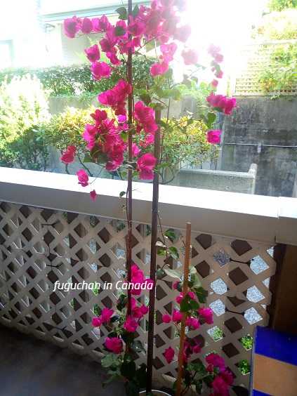 この間の日系ファーマーズマーケットで。。。いけないものを、桃太郎が買ってくれた。。。。それは、これ↓ブーゲンビリア (^▽^;)何がいけないのかというと。。。カナダ寒い国、ブーゲンビリアは暖かい国、熱帯の国で育つ花。。。気候に全く合っていない。。。。。(^▽^;)と、ずっと前から知ってたので。。。。こういったプランターを見ると、買いたくても、意味ないな。。。で、ずっと我慢していた。。。。で、ここで、このプランターが、なんと18ドルで売ってて。。。じーっと私が見つめていると。。。桃太郎が、「欲しいんだったら、買ってあげるよ、我慢する事なんてないじゃないか」というんだけど、「だって、買っても、枯れて死んだら、可哀想やんね。。。我が家も寒いし」と返事すると。。。「大丈夫、君は、GreenThumb(植物を育てるのが上手な人)だから、なんとかなる!」とか言って、勝手に買ってしまった。。。。(;^ω^)おまけに、すでに大きいというか、背が高いので。。。車に入らず。。。横に入れて、運んだという。。。。しかし、やっぱり、いいわ、ブーゲンビリア♥なんで、そんなにブーゲンビリアが好きかというと。。。。約30年前に(え、もう30年前???と、考えると怖い!)サンディエゴに住んでおりました。その時、住んでたお庭に、ブーゲンビリアが一面に植わっていて、お庭の裏にも、ブーゲンビリアがあって。。。。囲まれて暮らしてたのです。ブーゲンビリアに囲まれて、朝食や夕食を食べたりして。。。このお花にとても癒されてました。その時は、何故か、ピンク色が好きな時期で。。。で、この花をすっごく気に入り。。。。ブーゲンビリアを見ると、やっぱりサンディエゴを思い出す。まあ、結果的に言うと、全然、良い思い出とかは、ないサンディエゴなんだけどそこで出会ったアメリカ友人とは、30年経っても、まだ付き合いがあるし。とにかく、ブーゲンビリアが我が家に来てからは。。。なんか、パティオが明るくなった気分でいるのでした枯れないことを願い、そして、長生きするのを願ってます♡大感謝価格『光触媒 ブーゲンビリア 2.0m 2a3506-670 127B750』送料無料『直送品。代引不可・同梱不可・返品キャンセル・割引不可』 新築祝い・開店祝い・誕生日などのギフトに。(画像器が変更の場合あり)大感謝価格『光触媒 ブーゲンビリア 1.25m 2a4110-220』送料無料『直送品。代引不可・同梱不可・返品キャンセル・割引不可』 新築祝い・開店祝い・誕生日などのギフトに。(画像器が変更の場合あり)ブーゲンビリアフェンス仕立て カリフォルニアゴールド&ブライダルピンク 5号鉢【熱帯の花の代表】【ブーゲンビレア】【ギフト不可】フェイクグリーン 造花 ブーゲンビリアブッシュ FLB-8120送料込!【代引・同梱・ラッピング不可】 【離島は送料別】
