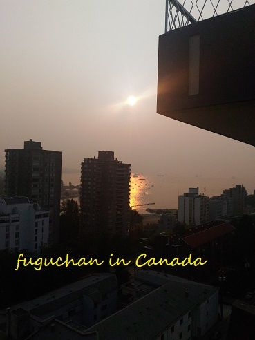雨も全然降っておらず。。。夕焼けも変な色の太陽で。。海に反射して変でした。。