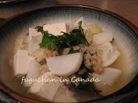 桃太郎が風邪引きかけだったので。。。玄米の味噌煮込みをしました。