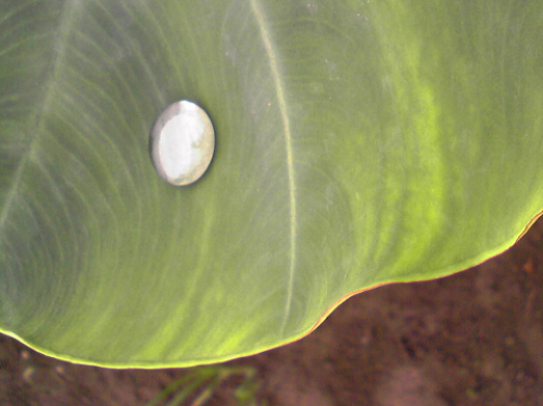 いつもの散歩コースを逆回りすると、キラッ 視界の端が・・・感じました大きな葉っぱの上に、それがありました(^O^)田畑だったところに、家の新築が増えてきましたので、風景が変わってきますよねこの変化が最近の楽しみの一つヽ(・∀・)ノ