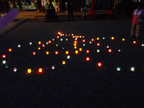小さなカラーコップでこんな感じに・・・・な~んだ???(^O^)ヒントは ポ・タ・リ・ン・グまあまあの出来だなヽ(・∀・)ノ妻沼聖天山の参道に120個の灯ろうを飾りました。昨日も暑かった~~蚊にも負けず、10人ほどの仲間で作業分担し、午後6時半点灯ヽ(´▽`)/盆踊り大会を盛り上げましたキャンドルナイトのスローガン「電気を消して、スローな夜を」熱帯夜続きの熊谷では、しばらくは無理ですね(# ゚Д゚)