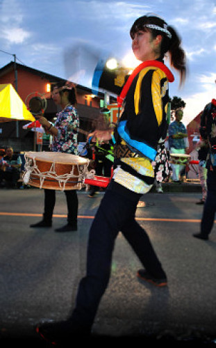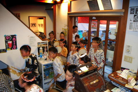 猛暑日の「めぬま祭り」当店のジューススタンドは、練り込み囃子のちびっ子たちに、何度も襲撃されました(^^♪今年は、18年ぶりに受け身の体制をとりました(^^♪暗くなってくると、一段と雰囲気が盛り上がりますよ。練り込み囃子の連に、お客様は釘づけ状態(^_-)-☆子供が参加している親は、ビデををもって並走しています来年は、また参加したくなるほどの練り込みリズムに、ズキッとやられました(^_-)-☆参加者の笑顔がかがやいていましたよ~本当に熱い、めぬま祭りの一日でした~