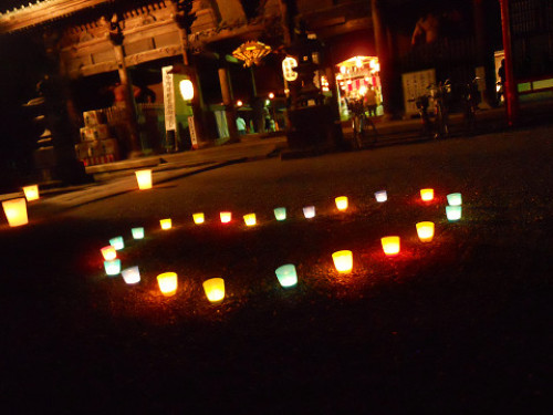 妻沼聖天山境内にて盆踊り大会とキャンドルナイトが始まりました。(^^)/初日は来場者が少なめでしたが、風がなくてキャンドルナイトがグー(^_-)-☆本日14日(日)午後6時半点灯いたします。ろうそくの灯りで、子供たちが描いた絵が浮かび上がりますよまた、妻沼のパワースポットもライトアップしています(^_-)-☆本殿北側の「夫婦の木」出会いの場所「中門」必見(^_-)-☆午後9時まで開催中!境内のお店で、かき氷・そば・うどん・和食レストラン営業中!夕涼みにお出かけください。浴衣で盆踊り…サイコー(^_-)-☆15日まで開催予定。