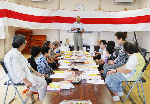 自治会で敬老会を開催しました(^_-)-☆75歳以上の方が19人中、12人集まりました(^◇^)雨が上がり、みなさん杖を突いたり、車を押しながらゆっくり集合(^^♪記念品贈呈や、米寿のお祝いのあと食事会です。一段落した後は、お楽しみの時間(^^♪今年は、ハーモニカ演奏での大合唱大会(^^♪「春の小川」「早春賦」「夕焼けこやけ」など8曲いやー~楽しそうでした~アンコールは「函館の人」演奏者も75歳になったばかりですが、上手ですよ(^O^)最後は、恒例のビンゴ大会(^_-)-☆11時から~13時でしたが、飲みすぎて立ち上がれないお年寄りが・・・笑顔いっぱいのイベントでした(^◇^)