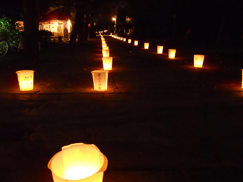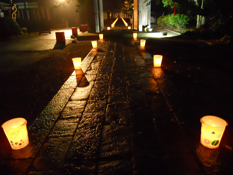 3日連続の最終日は、準備中に雨が降りましたが、空が明るくなっていましたので開催決定(^_-)-☆空気が入れ替わり、気分一新(^^♪盆踊り大会とキャンドルナイトを連続開催しましたよ(^◇^)キャンドルナイトの連続は初めてでしたが、お手伝いをしてくれる方が不思議と集まり大変助かりましたね(^◇^)雨上がりは、石畳に光が反射して・・・特にきれいでした~ご協力感謝申し上げます。8月27日(土)大我井神社の「火まつり」開催午後7時~9時見ごろは8時半頃から・・・境内に大きな○○○が・・・・軍手と新聞紙を持参するといいよ(^◇^)