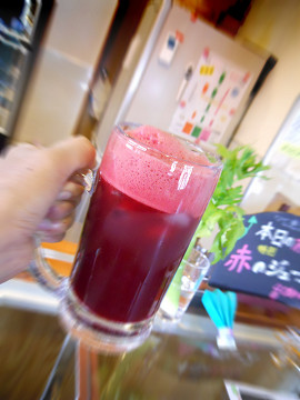 ミックスで飲みやすくなる予想でしたが( `ー´)ノそれにしても目が覚める苦さだ~(;O;) ゴーヤ夏バテにはチョー効きそうだよ(^^♪裏の畑でとれた、ゴーヤ、ビーツにリンゴとレモンのMIX昨日、草ぼうぼうの畑から残りのビーツをすべて収穫、もう少し涼しくなったら、畑の手入れだ~「自分を変える最強のジュース」提供中!(^_-)-☆↑(ビーツ、トマト、セロリ、大根、生姜、リンゴ、レモン)こちらは、ちょっと甘めですよ(^^♪