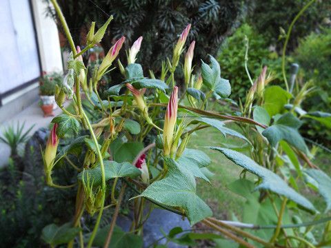 台風10号が東日本に上陸か・・・( ;∀;)庭の朝顔が、あちこちで咲き誇ってきましたよ(^◇^)すごい数だ~最後の力を振り絞っているかの如く、咲いていますね(^_-)-☆玄関前も水やりが毎日の朝晩でしたが、たっぷり楽しませてもらいましたよ前年のこぼれ種から移植したのがほとんどでしたが、生命力がすごい(^^)/最近は、植物の種や苗に触れることが多くなりましたので感動も多い。大きな被害が出ないように、皆さまお気を付けください!(^^)!西日の当たるところに作った、グリーンカーテンの朝顔は、まったく咲きません(´◉◞౪◟◉)不 思 議 ( `ー´)ノ