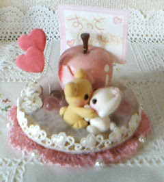 朝、早く目が覚めたけど、ベッドから起きれずいつまでもベッドにいました。夕べ、友達のお父様が亡くなったと知らせを受けて何だかなかなか眠れなくてね・・・。私の父の時と状況がにていて泣いてしまったよ。今日は燃えるゴミの日だったから、もう少しいらない物を捨てたかったけど気力がなく出来なかった。それでも大きいゴミ袋6個。ゴミ出しに行く気力もなく旦那が帰宅してから出してもらいました。そしていつものように暗いうちに実家を出発。7時前に自宅に到着しました。帰宅して2時間くらいしたら眠さがピークに達して11時まで寝てしまいました。ROCOと一緒に寝てたんだけど、起きたらROCOはいなかった。11時に起きたはいいけど、とにかく怠い。そして身体が痛い~。午後にはROCOにお留守番してもらって、みんなでお昼を食べに出かけました。クッキー買いたいとお気に入りのお店に寄ってもらってクッキーを購入。これでまた来週も頑張れる^^お昼を食べて帰宅してからは身体が超痛くなった。昨日粗大ゴミを出すときにあちこち階段とかにぶつかったんだよね。アザが出来ている所もありました(泣)そして階段の上り下りを何十回もしたせいか、物凄い筋肉痛です。そんな訳で2階に引き籠もり家事放棄。明日は痛みが消えてくれる事を願っています。今日の写真は先日あみちゃんのショップで購入した可愛い作品です^^可愛いのぉ・・・早速玄関のコーナーに飾りました。