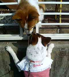 今朝は東高円寺の病院に行ってきた。駅に着いたらロマンスカーのちょうどいい時間ある。迷いもなく新宿までロマンスカーで行きました。そして病院へ。ある数値が思わしくない。薬である程度まで下げられるんだけど、後は体重を減らさないと無理みたい。そんな事も思いながら妹と自由が丘で待ち合わせ。まずイマン村に行ってきました^^こじんまりしたお店で良かったです。品数は少ないけど、い感じのお店でした^^その後はお腹がすいたね~って事で目についたお店で石焼きビビンバを食べた。美味しくないねって事で私は珍しく残してしまったよ。その後も自由がをブラブラして二子玉へ。結構歩いたから足がパンパンでした。玉高をうろうろして妹とバイバイして電車を乗り継いで帰宅。駅に着いたら速攻でダイエットシェークを購入。帰り道は重かったなぁ。そうそう昨日も沢山眠れたので今夜も早く眠りたいと思います。さっきお薬のんできたから眠くなってきた・・・ってゆーか頭がもうろうとしていて、キーボードが打てないよぉ。誤字脱字あったら許して。写真は昨日こっちに来る直前にお散歩に連れて行きご近所のコーギーちゃんとチュッとしてるところです。