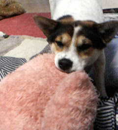 朝食を食べる前にちょっとその場を離れたらテーブルの上からパンが消えていた。えっ?って思ったらROCOがくわえてました。半分ROCOに食べられちゃったよ。今日はローストビーフをパンに挟んでおいたの。もう!ROCOちゃん困るよぉ。食いしん坊で・・・。