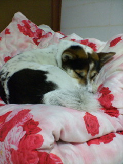 おはようございます。最近ちょっとした事でイライラしてしまいます。いつも心穏やかでいたいんだけど、なかなか難しいです。今朝のイライラの原因は・・・さっき旦那を送り出す時に旦那も咳してたんだよね。そしたら「家中、咳でイヤになっちゃうね~」って言った人がいるの。今回の風邪持ってきたの誰よぉ!って感じ。あ~イライラ。なので私はマイルームに今日も籠もって静養します。また寝たり起きたりの生活だわ。ROCOは昨日も旦那と2階で寝てたんだけど、もう旦那は出勤してしまったので、私の所にきたよ。すでに私の足の上で寝ています。昨日も夕方頃から熱が出ちゃって辛かったです。今朝は熱なし。でも未だ喉の痛みは取れず、咳も・・・あぁ早く風邪菌どっか行って~。