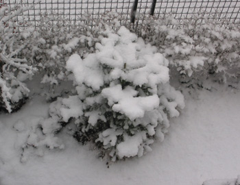 週末の雪 ここらでは5年ぶり ちょうど今の家に入居したころ以来の雪でした。 もみの木に雪はよく似合います(笑)
