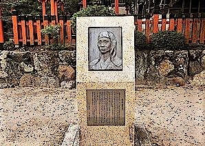 ↑桂昌院ありし日のレリーフです 境内に飾られています