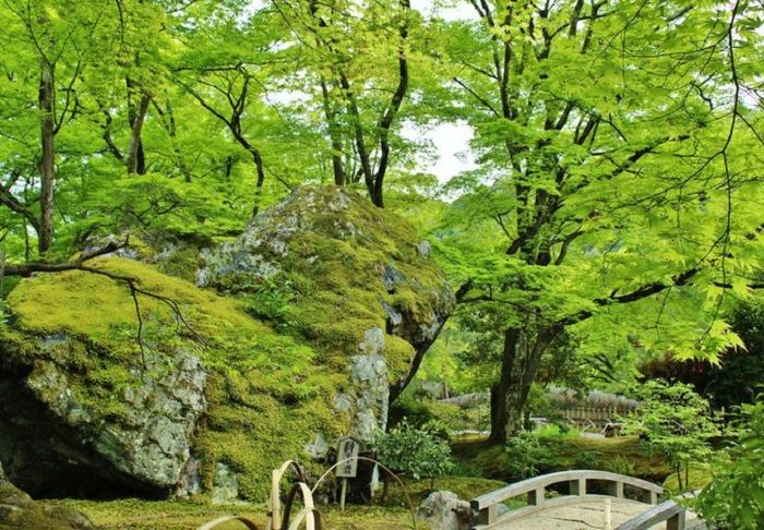 庭は、「獅子岩」など巨岩をあちこちに配し、嵐山の景観を巧みに取り入れた借景回游式庭園で、同時代の禅僧・策彦周良(サクゲンシュウリョウ)禅師によって作庭され「獅子吼(シシク)の庭」と呼ばれます