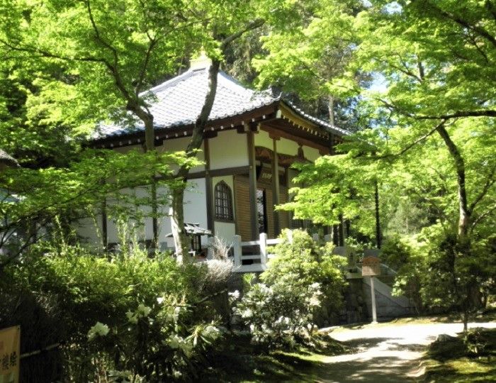 ↓「無礙光堂(ムゲコウドウ)」供養堂です、こちらも青もみじに覆われています