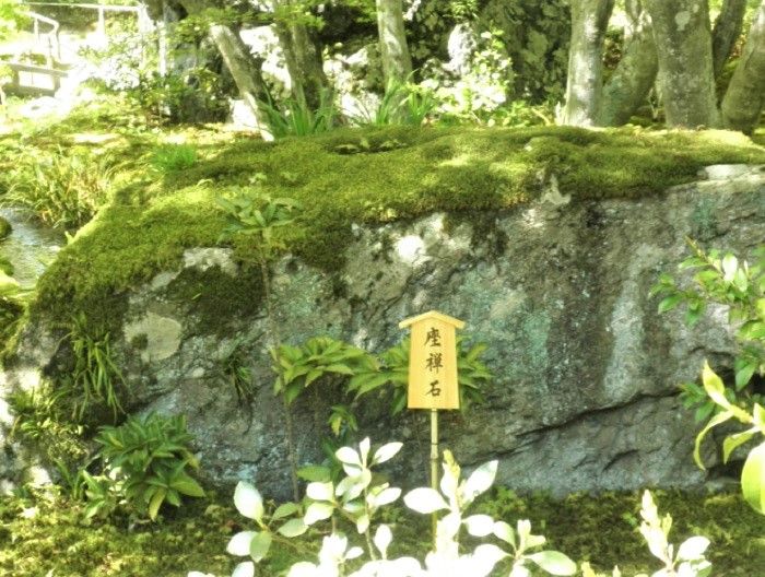 ↓「座禅石」と謂れます 分厚い苔が常駐のようです