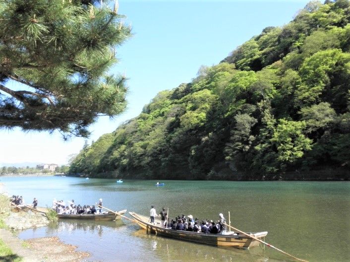 ↓お寺を出て南へ 大堰川嵐山、保津川下りの終着 船着き場の景観です