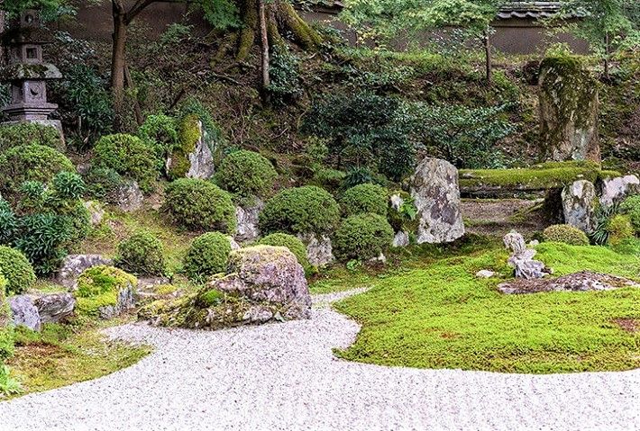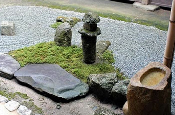 ↓庫裏奥にある坪庭 掃き描かれた砂と苔地に可愛い燈籠の庭です、じっと見れば味のある蹲踞が置かれています