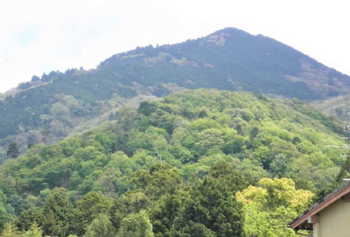↓帰りに再度勅使門を見上げると門より青もみが迫ります