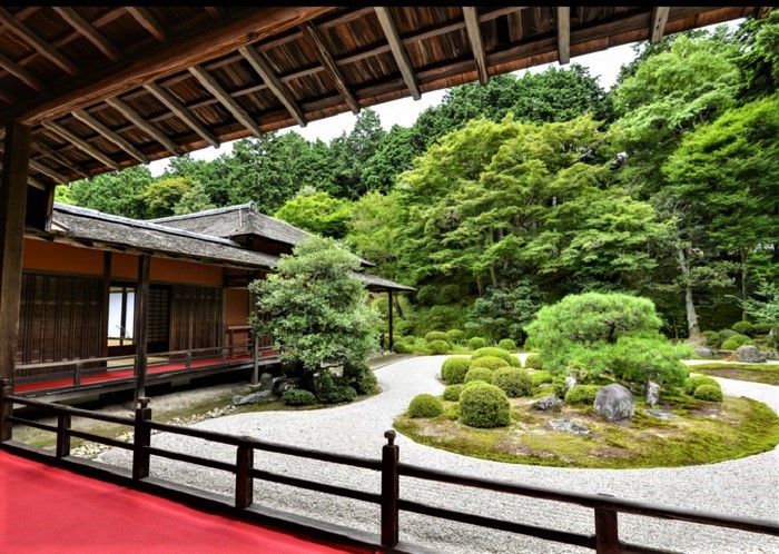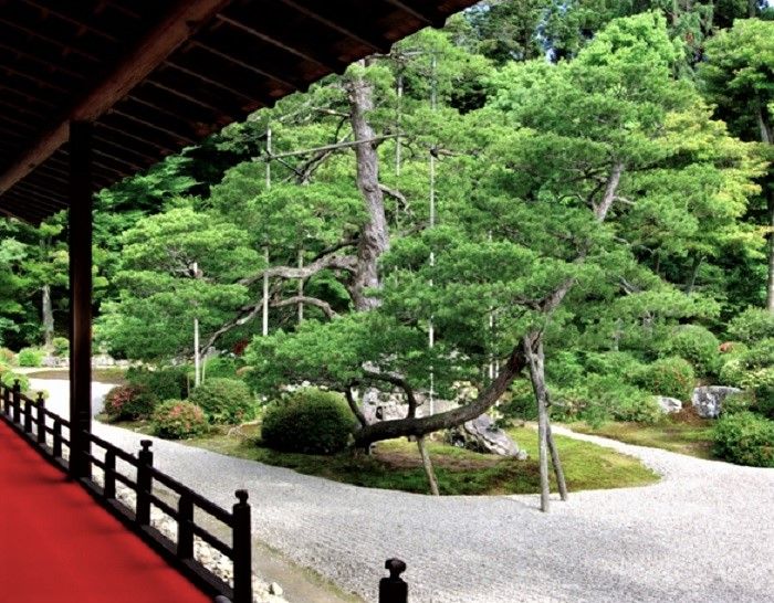 新緑と深紅が映える...枯山水庭園......曼殊院門跡  キリシマツツジが鮮やかで