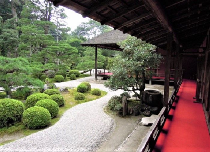 書院前に広がる枯山水庭園は、所謂寺院の庭でなくまた武家好みの庭でもなく、宮廷風の雅やかな公家好みの庭と謂われています