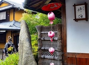 ↓場所は、「八坂の塔」前の八坂通りを少し下がったところ 祇園でよく知られる風景で風情ある建物が軒を連ね観光客で賑わうこの通り「夢見坂」と名付けられています