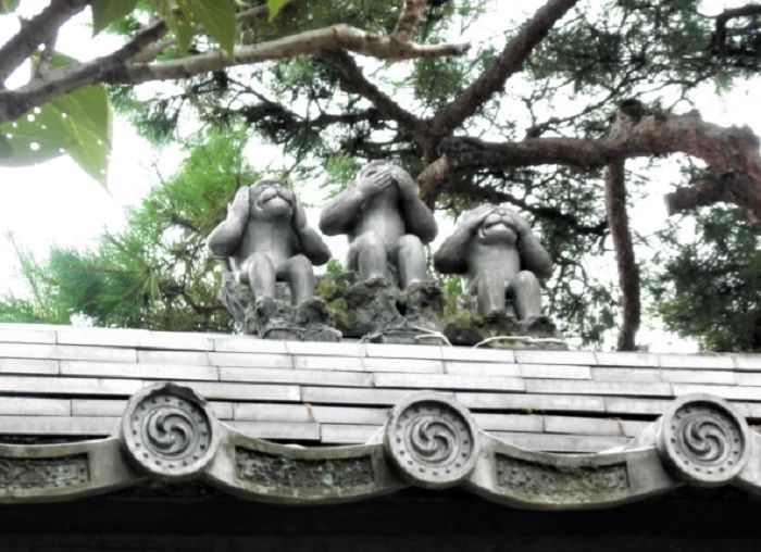 ↓山門の屋根には「見ざる・言わざる・聞かざる」の三猿です