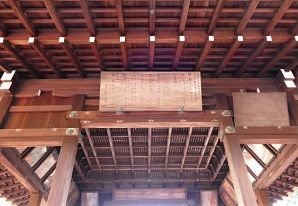 ↓拝殿内折上格天井で織田信長三十六功臣中の十八功臣の額が掲げられています