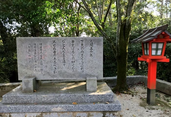 ↓歌碑「敦盛」 信長公が桶狭間の合戦の出陣に際し舞ったとされる